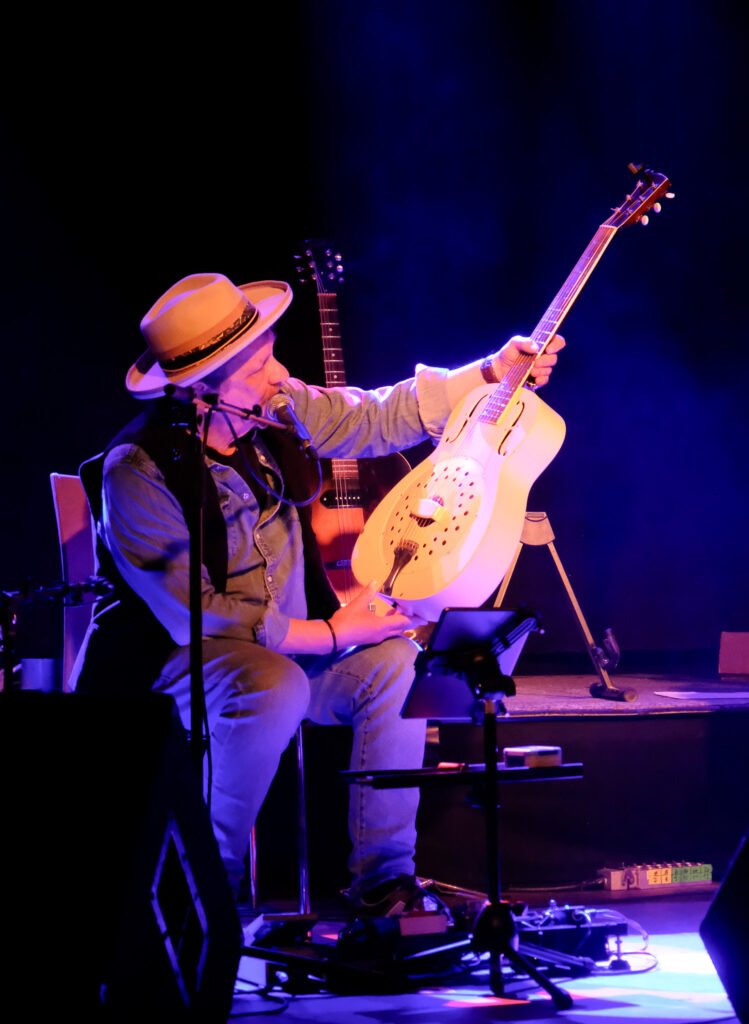 Verschiedene Gitarren, Dobros, Ukulele, Bluesharp- authentischer Gitarrensound und eine markante Stimme! Eigene Songs und Instrumentals, und sehr persönliche Versionen handverlesener Cover-Songs. Fingerstyle Guitar, Blues, Americana, und eine kleine Prise Swing. Abwechslungsreich, humor- und gefühlvoll, unterhaltsam und berührend zugleich. Von der Kleinkunstbühne bis zum TV-„Tatort“ Soundtrack, im Radio wie auf privaten Festen und Veranstaltungen bestens bewährt.